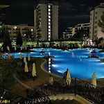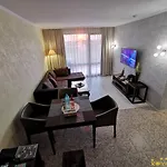 Royal Beach Hotel Apartment van 65 m^2 ligt op maar 1 km verwijderd van Sunny Beach en biedt Turkse stoombaden, een dompelbad en een stoomcabine. Bij het appartement kunnen gasten loungen bij een buitenzwembad of een bezoek brengen aan het Waterpark Action, dat op slechts 9 minuten lopen ligt.